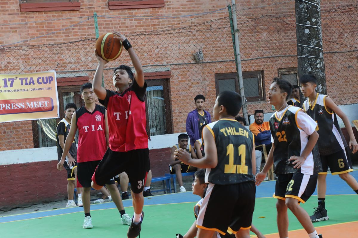 काठमाडौं । आयोजक ठुङ्गरम इन्टरनेसनल एकेडेमी (टीआईए) ‘ए’ ले १७ औं टीआईए कप अन्तरविद्यालय बास्केटबल प्रतियोगिताको ब्वाइजमा शनिबार दोहोरो जित हात पारेको छ । हात्तीगौडास्थित घरेलु कोर्टमा टीआईए ‘ए’ ले दुर्गा भवानीलाई ५१–३२ ले पराजित गर्यो । विजेताका सुमन नगरकोटीले १९ अंक जोडे ।