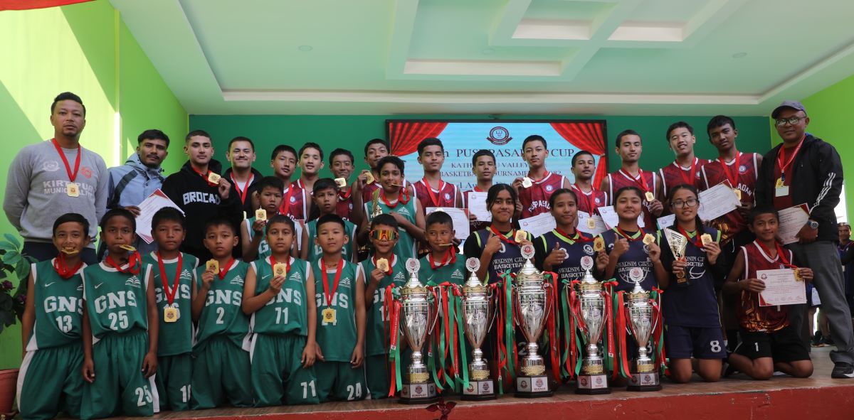 काठमाडौं । आयोजक पुष्पसदन, ग्रिनफिल्ड र स्वर्णिमले चौथो पुष्पसदन कप उपत्यकाव्यापी अन्तरविद्यालय बास्केटबल प्रतियोगिताको उपाधि सोमबार जितेका छन् । पुष्पसदन सिनियर ब्वाइज, ग्रिनफिल्ड जुनियर ब्वाइज र स्वर्णिम गर्ल्सको थ्री बाइ थ्रीमा च्याम्पियन बनेका हुन् ।