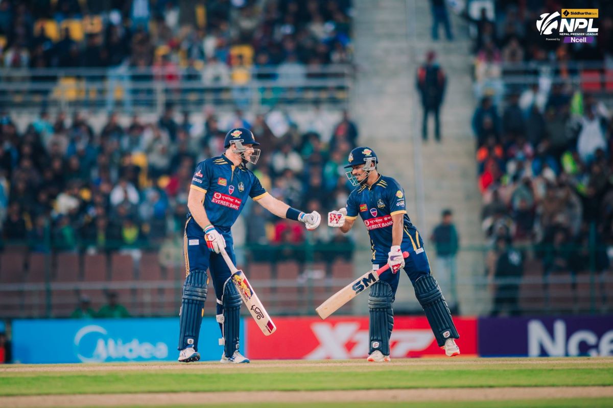 काठमाडौं । लोकेश बम र मार्टिन गप्टिलको शतकीय साझेदारीसँगै नयाँ कीर्तिमान बनाउँदै नेपाल प्रिमियर लिग (एनपीएल) सिजन–२ मा विराटनगर किंग्सले सानदार विजयी सुरुवात गरेको छ । मंगलबार सम्पन्न दोस्रो खेलमा विराटनगरले पोखरा एभेन्जर्सलाई ५३ रनले पराजित गरेको हो ।
