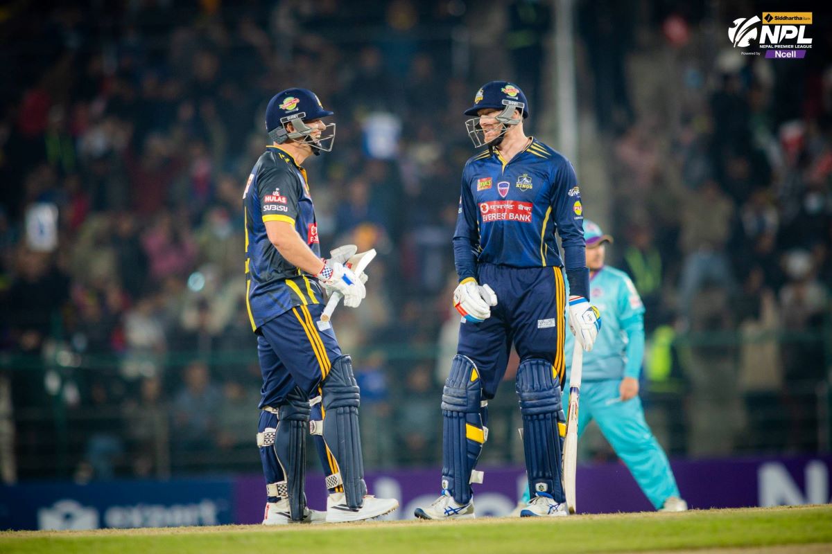 लोकेश बल १४ रन, मार्टिन गुप्टिल २५ रन, बसिर अहमद १९ रन र नरेन भट्टले २४ रनको योगदान दिए । शुभम रञ्जाने ६ रन र कप्तान सन्दीप लामिछाने ९ रनमा अविजित रहेका थिए ।