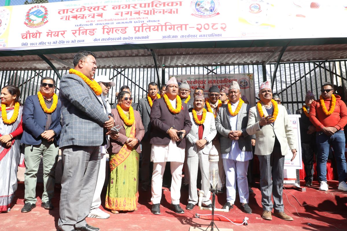 काठमाडौं । तार्केश्वर नगरापालिकाको आयोजनामा चौथो मेयर रनिङ सिल्ड प्रतियोगिता शनिबारदेखि सुरु भएको छ । प्रतियोगिताको  तार्केश्वर नगरपालिका मेयर कृष्णहरि महर्जनले एक कार्यक्रमबीच उद्घाटन गरे ।