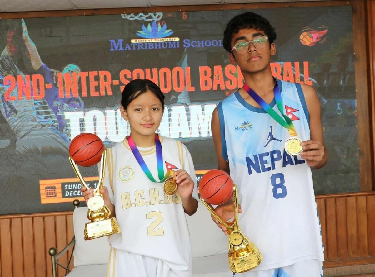 काठमाडौं । आयोजक मातृभूमि ‘ए’ र बौद्ध चिल्ड्रेन हेभेन स्कुलले दोश्रो मातृभूमि कप अन्तरविद्यालय बास्केटबल प्रतियोगिताको उपाधि  आइतबार जितेका छन् । मातृभूमि ‘ए’ ब्वाइज तथा बौद्ध चिल्ड्रेन गर्ल्समा च्याम्पियन भए ।