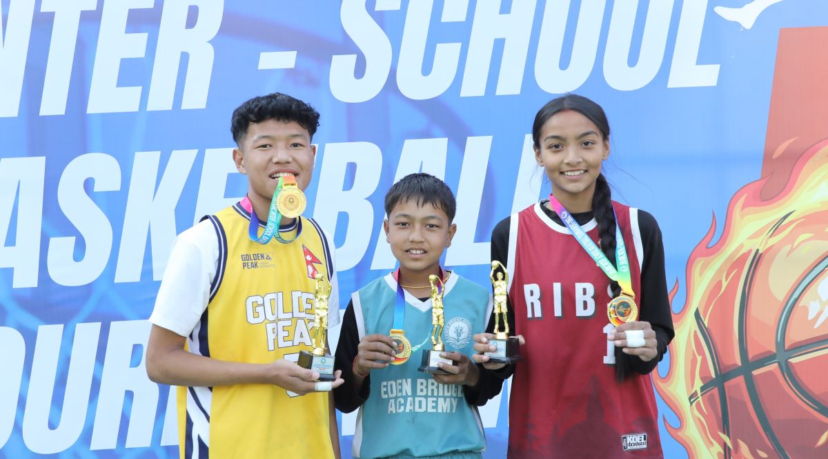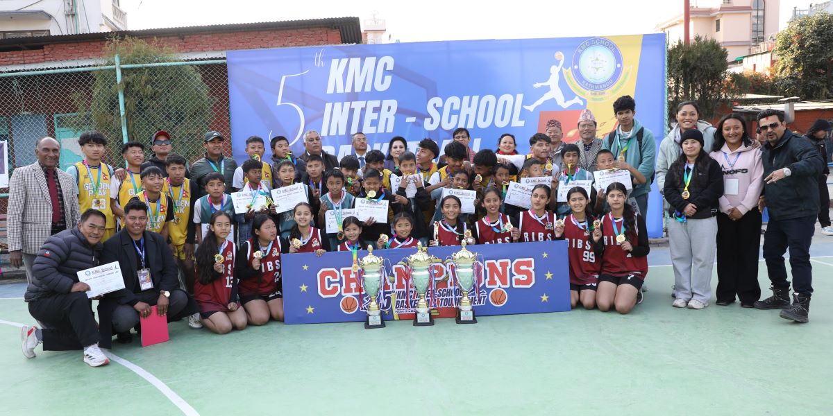 काठमाडौं । गोल्डेनपिक, इडेन ब्रिज एकेडेमी (इबीए) र डिफेन्डिङ च्याम्पियन रिब्सले पाँचौं केएमसी अन्तरविद्यालय बास्केटबल प्रतियोगिताको उपाधि शनिबार जितेका छन् । गोल्डेनपिक सिनियर ब्वाइज, इबीए जुनियर ब्वाइज र रिब्स सिनियर गर्ल्समा च्याम्पियन बने ।