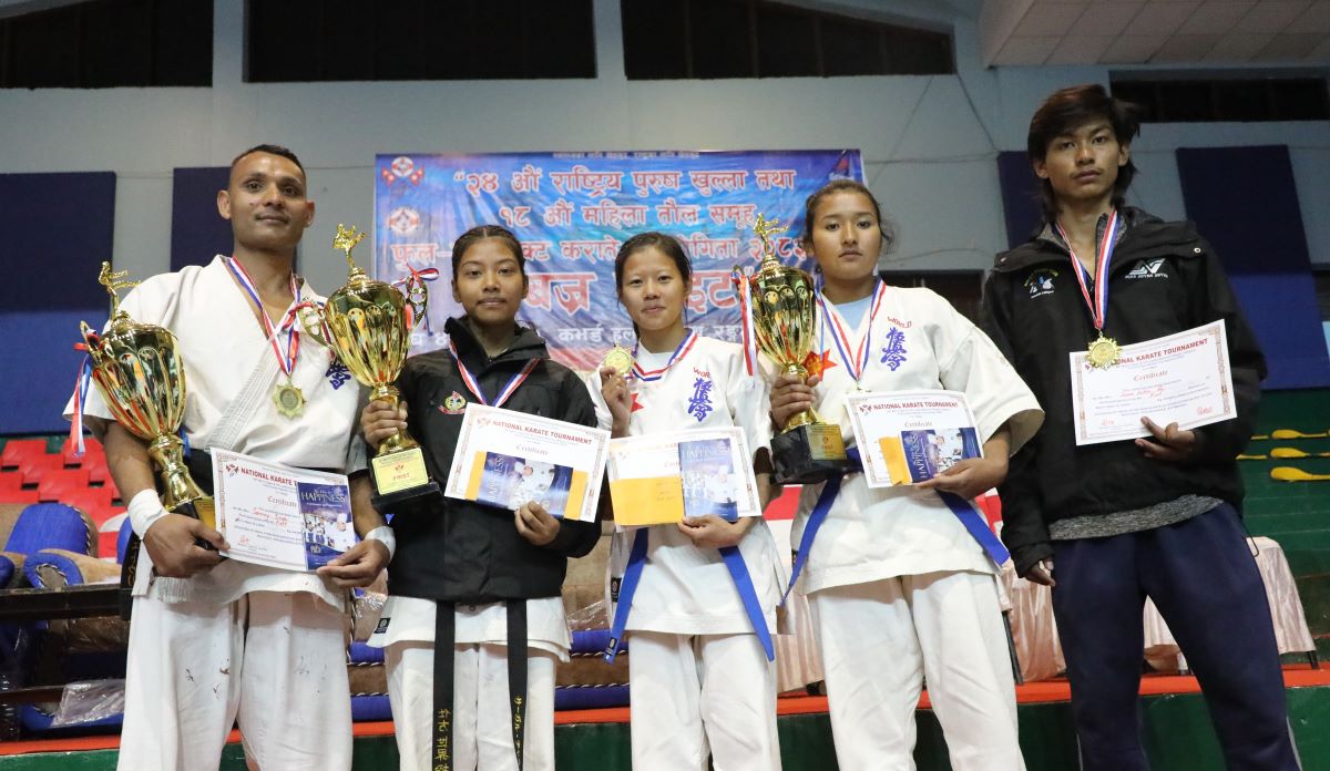 काठमाडौं । नेपाल आर्मीका सनीसिंह सुनार, एपीएफकी अनिशा तामाङ र नेपाल आर्मीकी सपना ऐडी २४ औं राष्ट्रिय पुरुष खुला तथा १८ औं राष्ट्रिय महिला तौलसमूह फुल कन्ट्याक्ट कराते प्रतियोगितामा सोमबार च्याम्पियन बनेका छन् । सनी पुरुष खुला तौलसमूह, अनिशा महिला ५५ केजीमुनि र सपना महिला ५५ केजीमाथि पहिलो भए ।