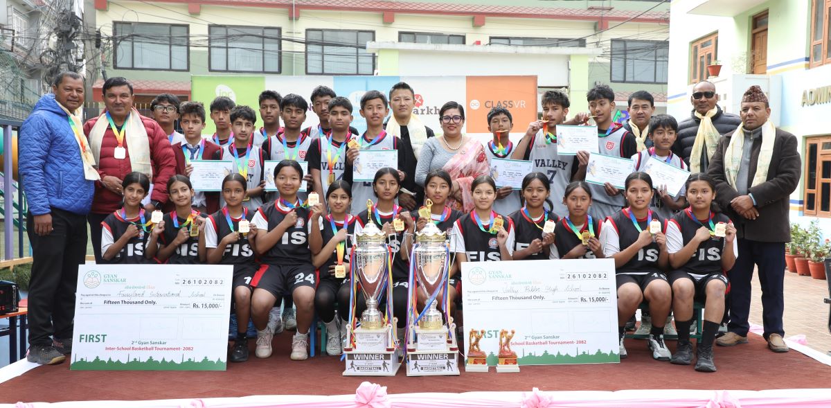 काठमाडौं । भ्याली पब्लिक र फेरिल्यान्ड इन्टरेनसनल स्कुलले दोश्रो ज्ञान संस्कार अन्तरविद्यालय बास्केटबल प्रतियोगिताको उपाधि सोमबार जितेका छन् । भ्याली पब्लिक ब्वाइज तथा फेरिल्यान्ड गर्ल्समा च्याम्पियन बने ।
