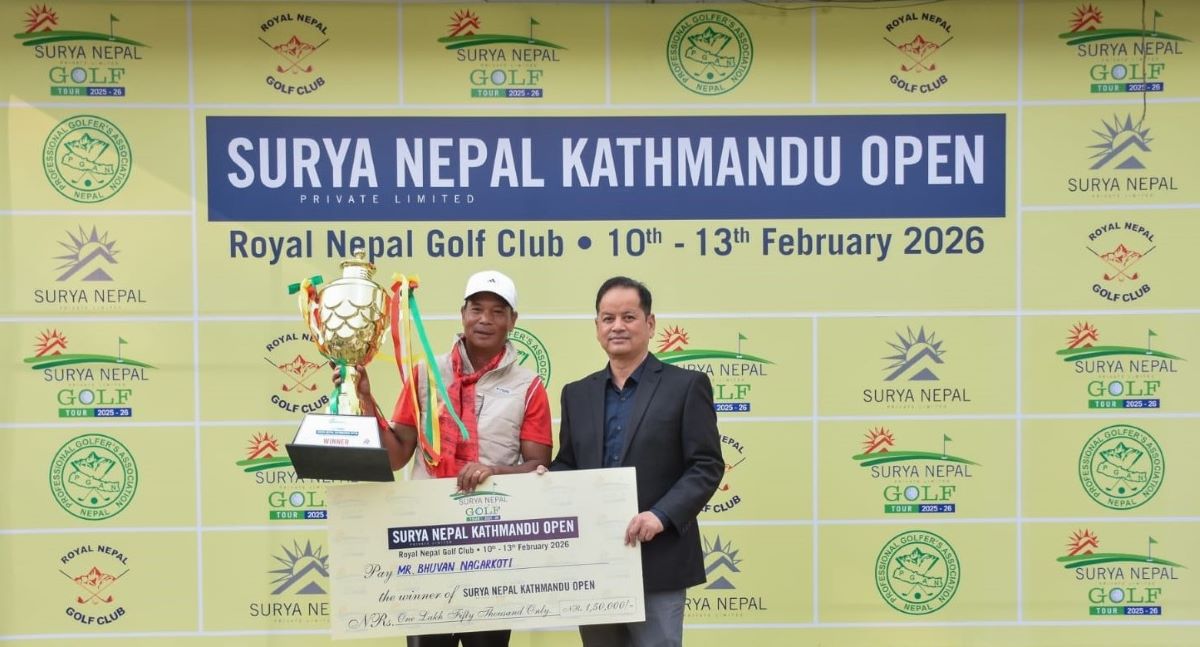 काठमाडौं । सूर्य नेपाल गल्फ टुर २०२५–२६ अन्तर्गतको चौथो प्रतियोगिता सूर्य नेपाल काठमाडौं ओपनको उपाधि भुवन नगरकोटीले जितेका  छन्। आज इभन–पार ६८ खेलेका उनले समग्रमा ६–अन्डर २ सय ६६ सहित उपाधि जितेका हुन्।